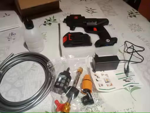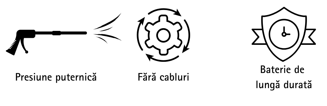 Pistolul folosește o pompă puternică alimentată de o baterie Li-Ion, care aspiră apa dintr-o găleată sau alt recipient și o transformă într-un jet de înaltă presiune, perfect pentru curățarea rapidă a suprafețelor.